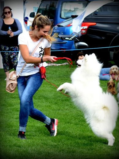 We have also attracted crowds at agility shows, as Samoyeds are very rarely seen competing at this kind of sport. We used to get times similar to border collies in our classes.